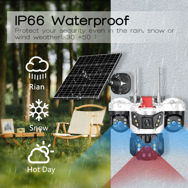 HIKWIFI V380 6K Outdoor Security Network Camera 3 Lens 12MP 360° 1 PTZ IP CCTV Wireless WIFI 4G Solar Camera