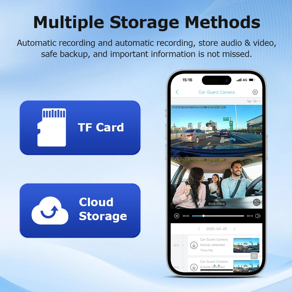 Storage TF card 128GB + Cloud storage.